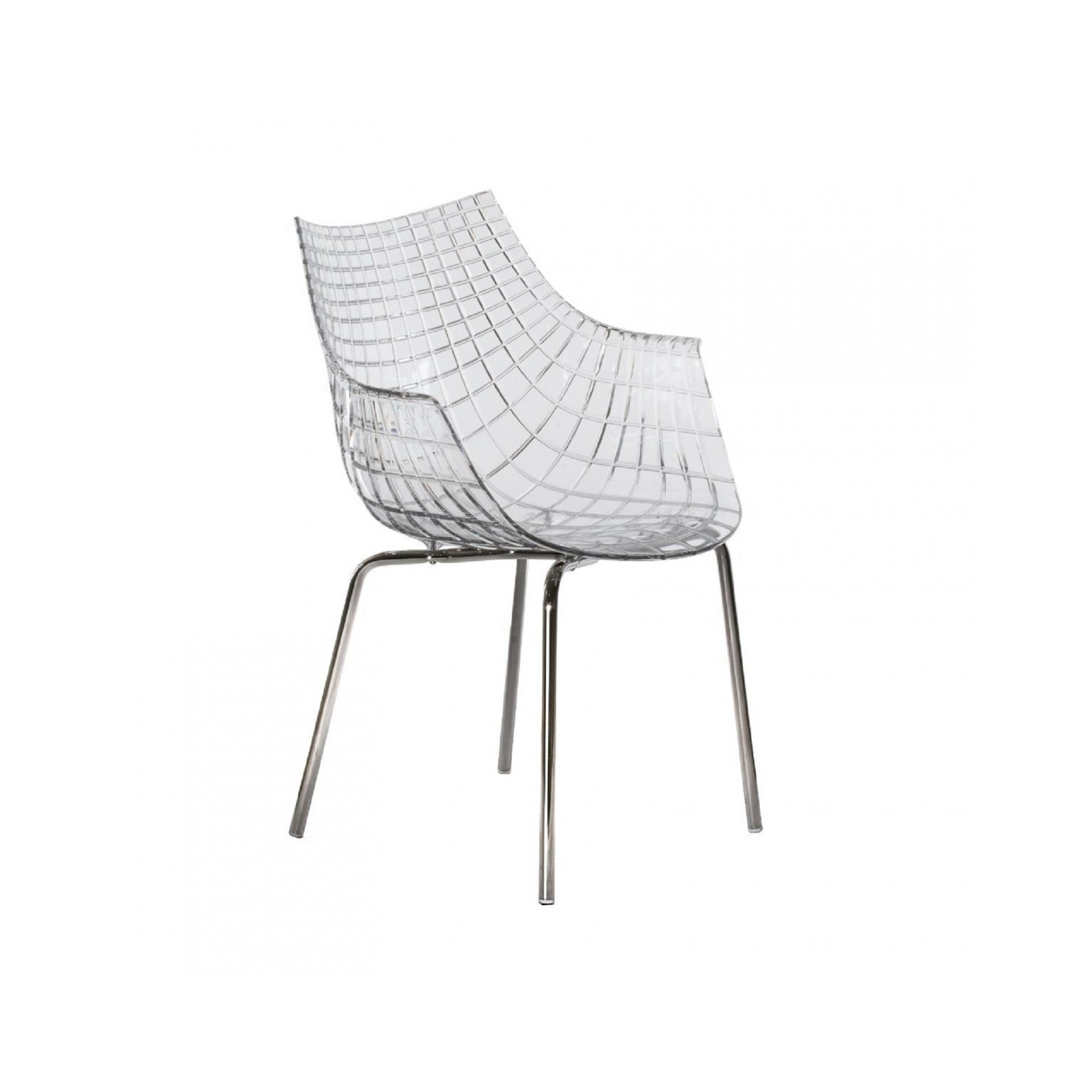 Meridiana è l'iconica seduta disegnata da Christophe Pillet nel 2004. Questa sedia dalle linee diamantate si compone di una scocca in policarbonato trasparente e gambe in acciaio cromato o verniciato nero. La sua forma inconfondibile la rende unica e adatta a qualsiasi ambiente, dalla sala da pranzo all'ufficio.