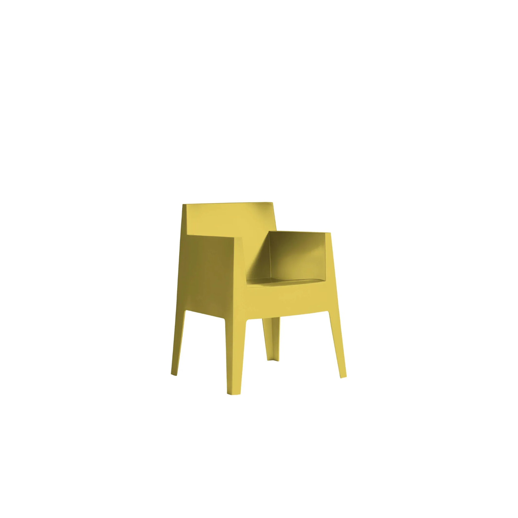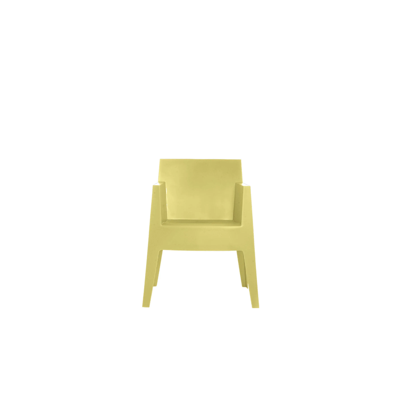Disegnata da Philippe Starck, Toy è una poltroncina monoblocco in polipropilene spigolosa ma allo stesso tempo sorprendentemente confortevole adatta agli ambienti interni ed esterni.