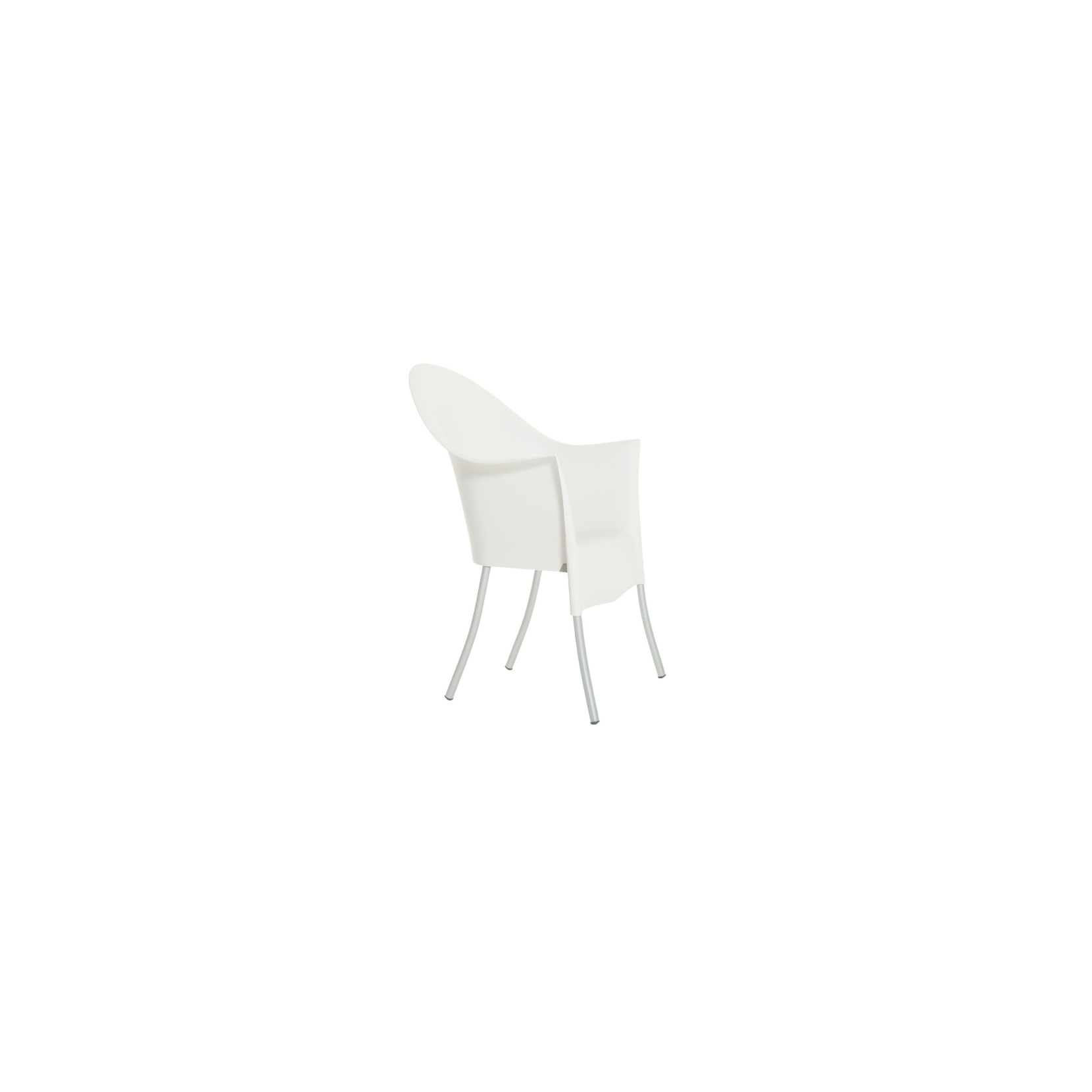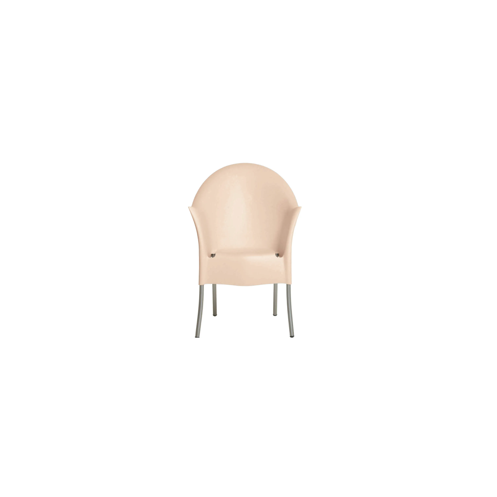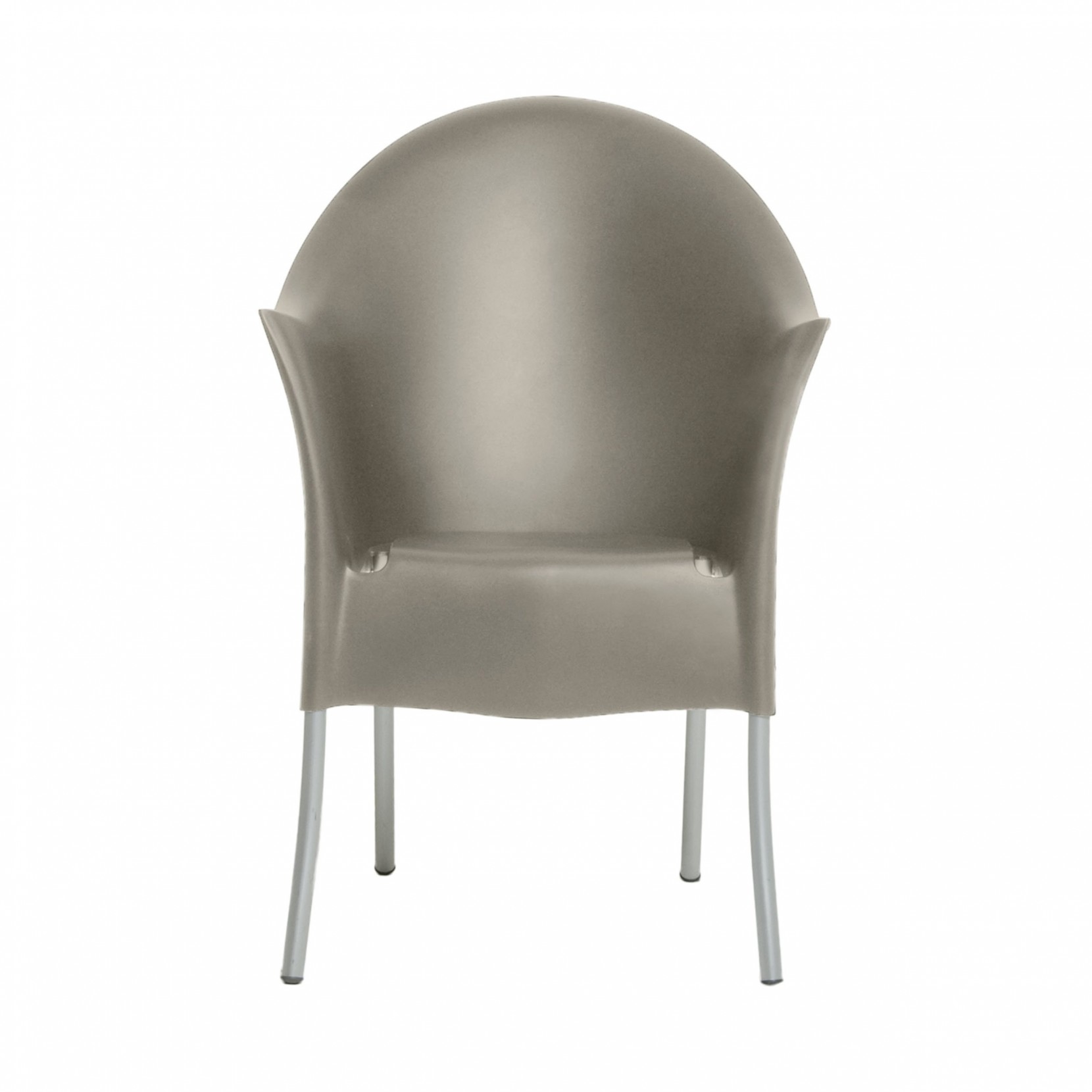 Gambe leggermente curve e schienale rialzato, Questa è Lord Yo; una poltrona in polipropilene con struttura in acciaio simile ad un trono disegnata da noto designer Philippe Starck.