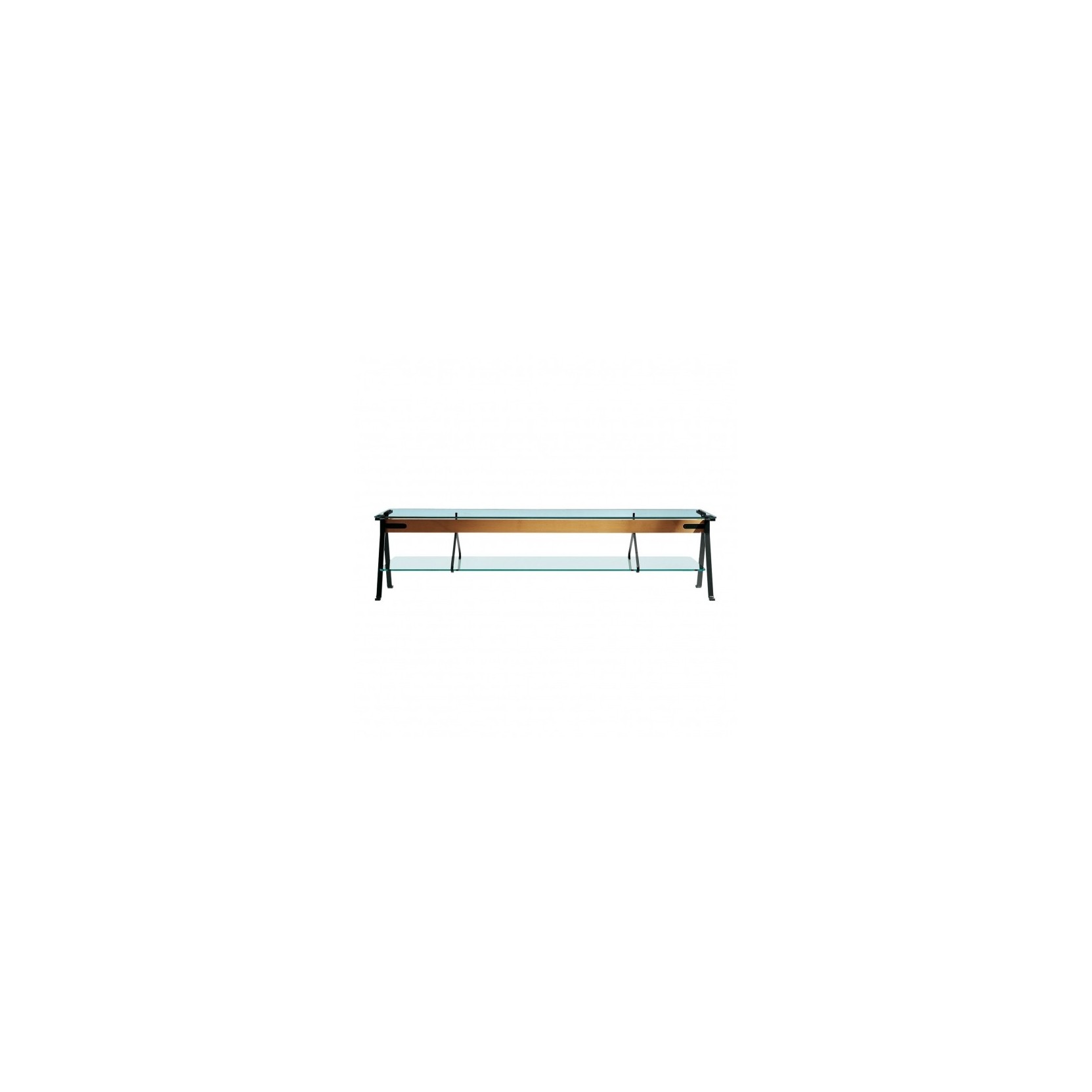 Questo tavolo è un capolavoro di equilibrio tra materiali naturali e industriali. Un pezzo d'arredo che combina la solidità del metallo con il calore pregiato del legno, creando un elemento versatile e di grande impatto visivo, ideale per ingressi, soggiorni o corridoi.