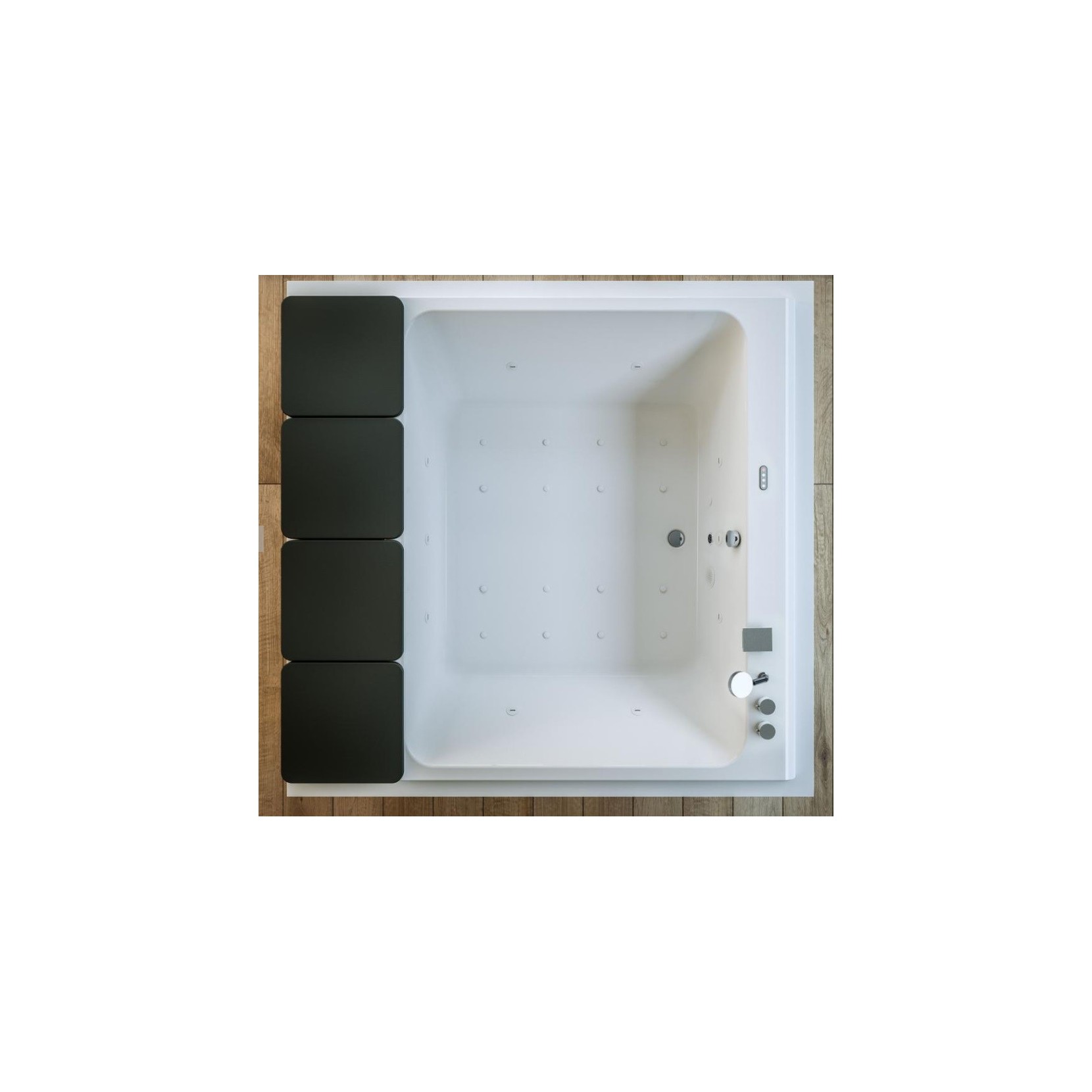bocchette Filo, luce/cromoterapia, funzione bluetooth, zona relax con 4 cuscini in poliuretano morbido colore grigio antracite, sanificazione