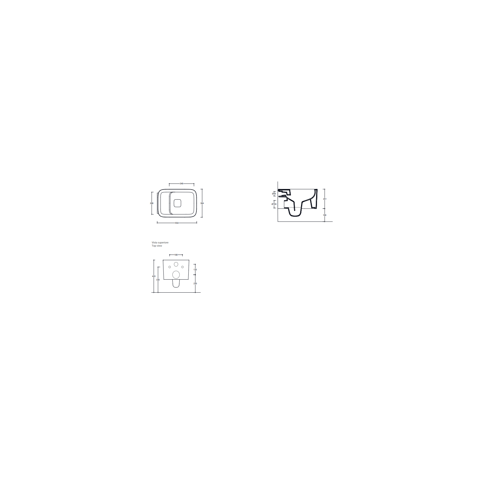 VALDAMA Cameo - WC sospeso Rimless in ceramica con fissaggi e coprivaso incluso