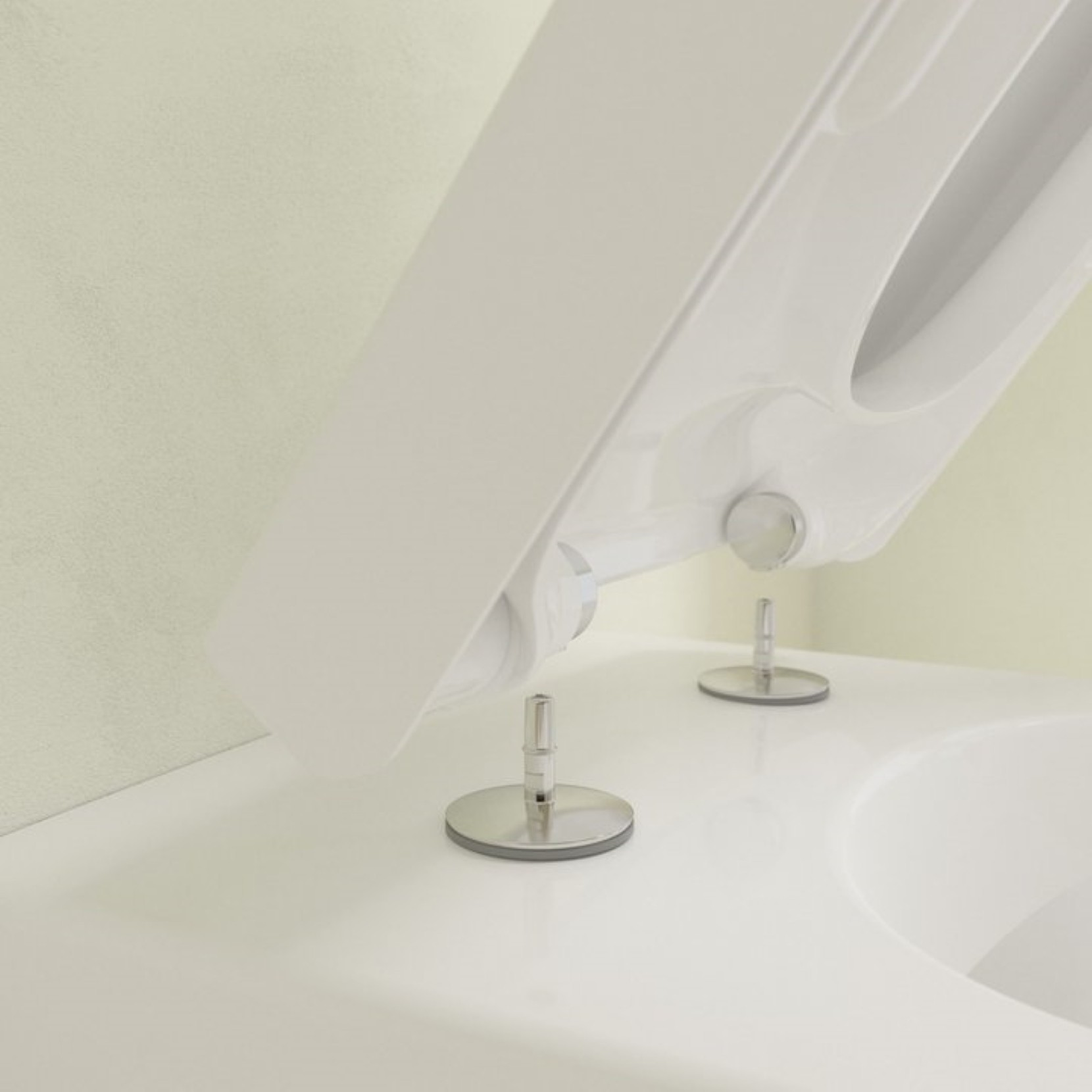 Wc a cacciata DirectFlush bianco alpin a pavimento, il prezzo comprende il copriwater SlimSeat con cerniere QuickRelease e SoftClosing e il kit fissaggio.