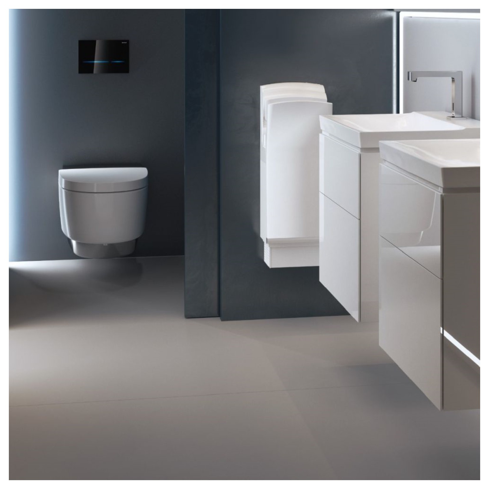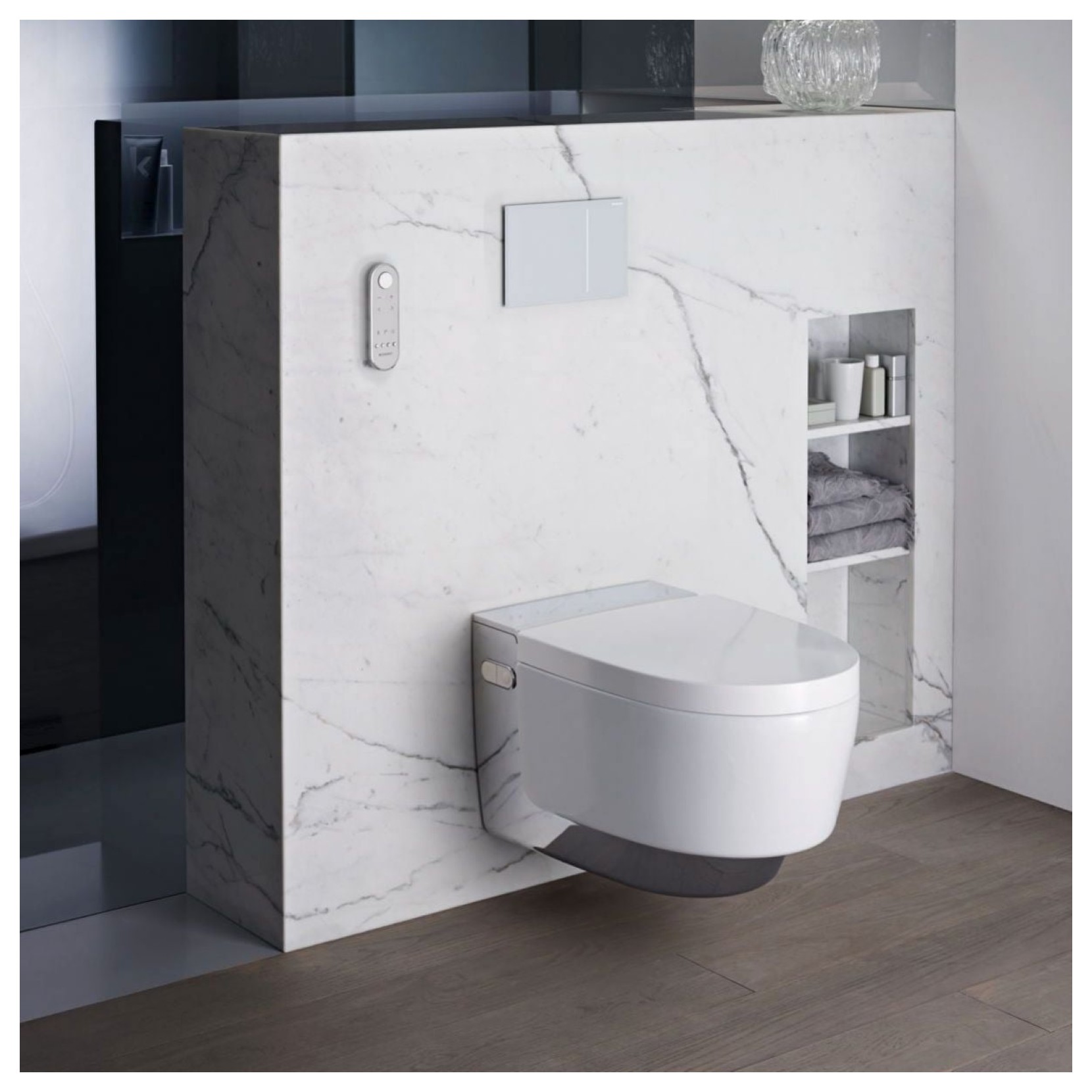 L'acqua è da sempre indispensabile per l'igiene personale quotidiana e lo sa bene Geberit. Ecco perché nasce la serie di vasi, bidet e coprivaso Aquaclean, quest'ultima offre un'esperienza di benessere unica premendo semplicemente un pulsante. Aquaclean è dotato di meccanismo con asciugatura ad aria calda e sedile riscaldabile. Inoltre è possibile integrare un telecomando a parete in vetro bianco o nero.