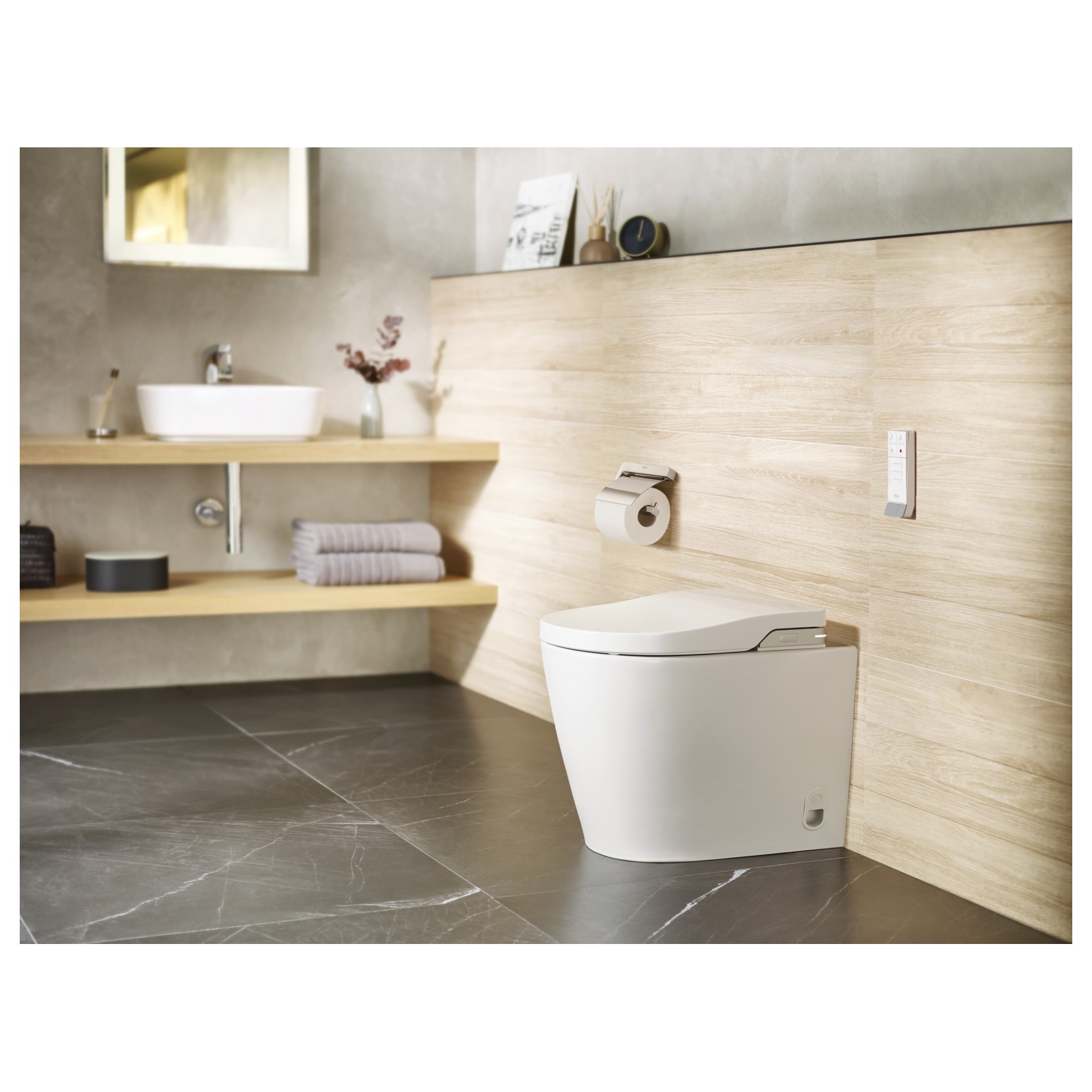 Roca propone la serie Inspira una linea elegante e versatile che si adatta a svariate tipologie di bagni. Il vaso a pavimento filomuro In-Wash con In-tank, incorpora la cassetta con meccanismo a doppio scarico 4.5/3 Lt. Il vaso è dotato di impostazioni luci LED quali luci notturne: spento, standard o standard con luci notturne. Il kit di fissaggio è incluso, il sedile ed il coperchio sono rimovibili ed il sistema di scarico è dotato di lavaggio profondo. Lo scarico è bifunzionale e il vaso si caratterizza per la pulizia personale.