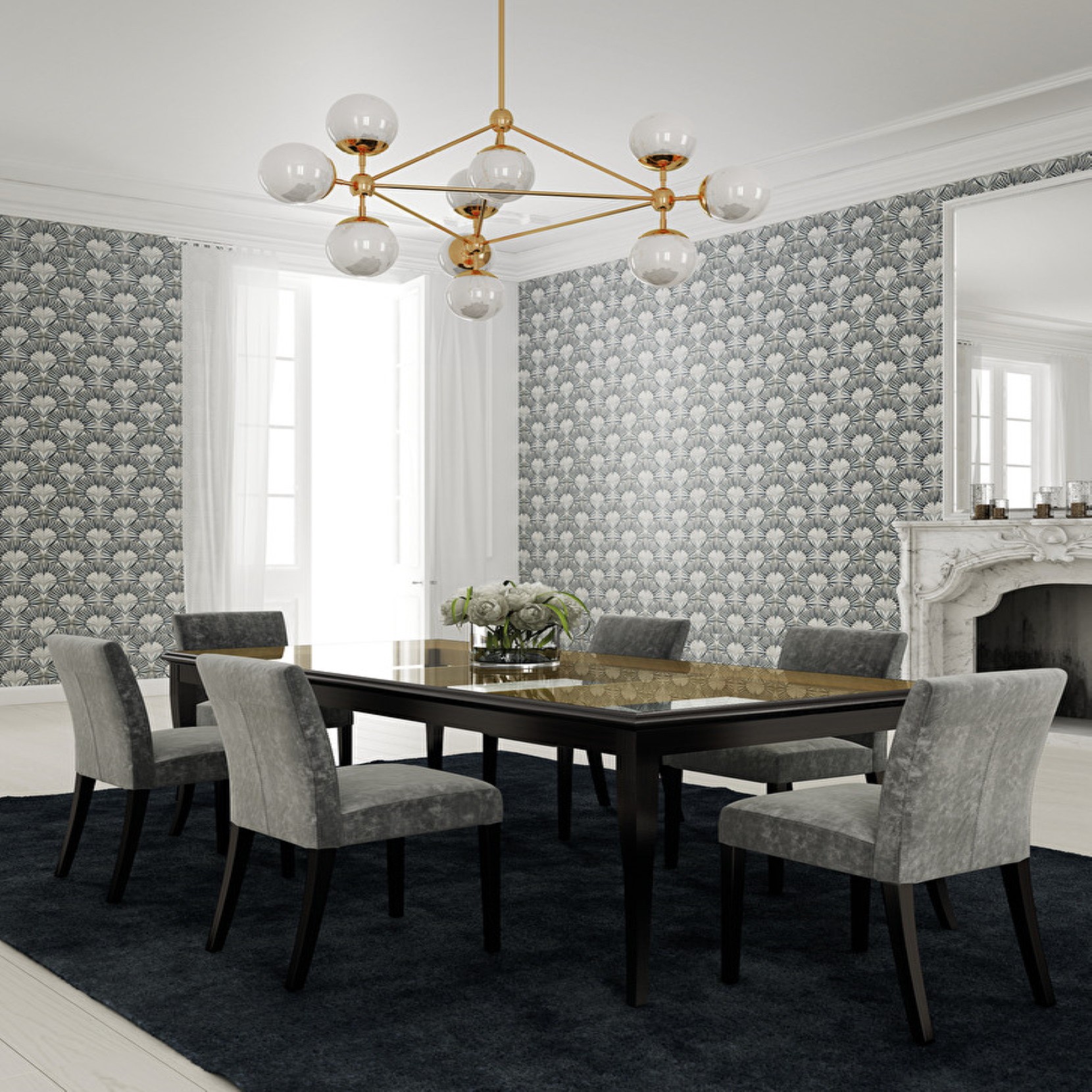 Stilizzazione in chiave Art Déco il motivo classico della corolla di fiori. La versione è disponibile in diverse varianti cromatiche. Dal design particolare è l'ideale per un ambiente particolarmente ricercato, case private o boutique hotels.